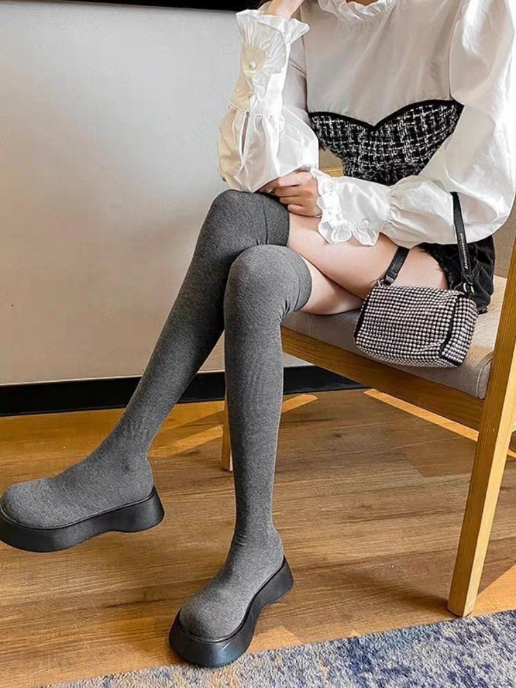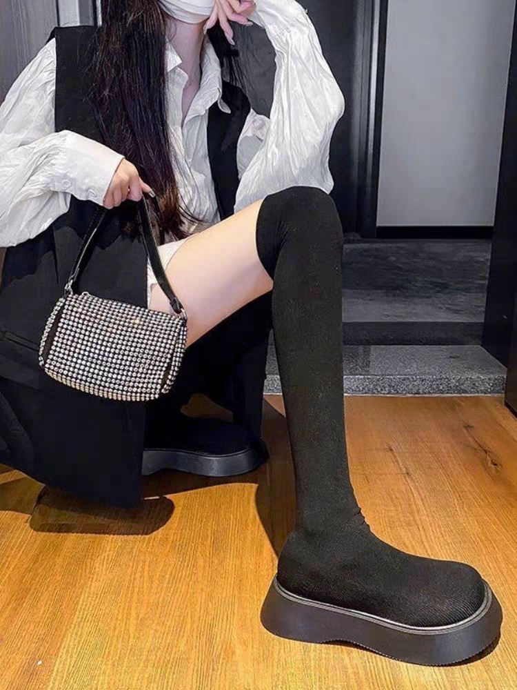 高筒过膝长靴女秋天配裙子长筒厚底小个子春秋款单靴瘦瘦丝袜靴子